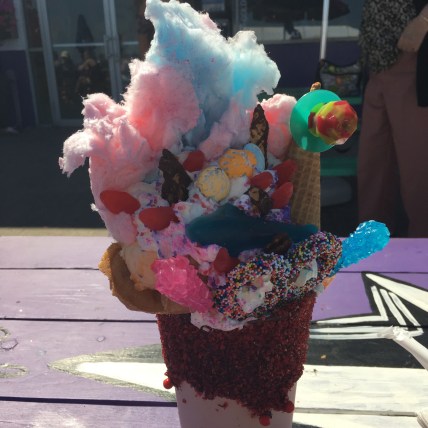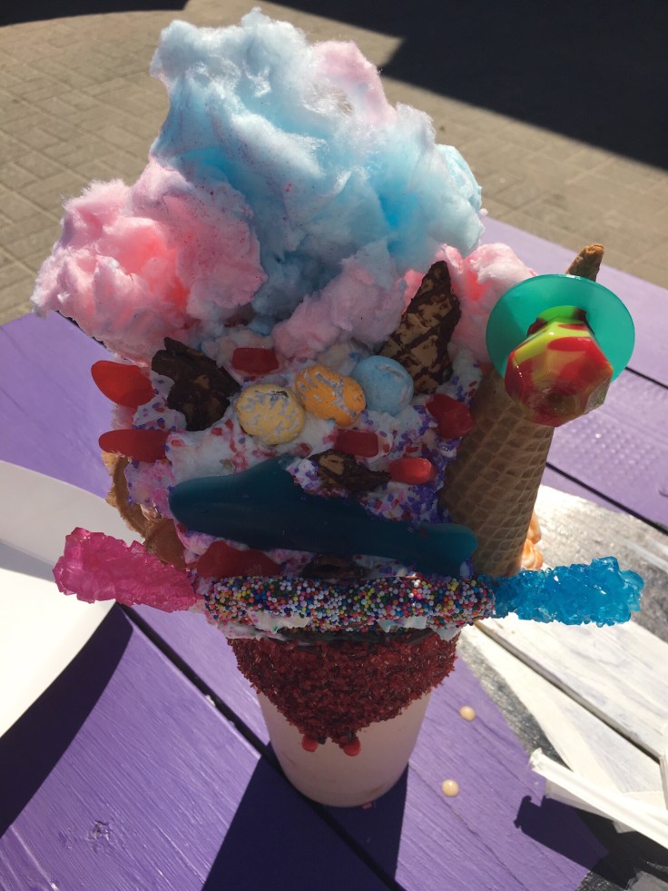 Summer is here! Its offcially summer so get your sunscreen and bathing suit and get down the the beach. Nothing goes better than ice cream on a hot summer day. So we thought. What goes even better than an ice cream cone is a “Sideshow Shake” from Coney Waffle. These shakes are every child’s dream. Its a creamy milk shake that is loaded with anything you can think of! From different kinds of candy to ice cream cones and pretzels. Everything under the sun to be enjoyed while you are under the sun.