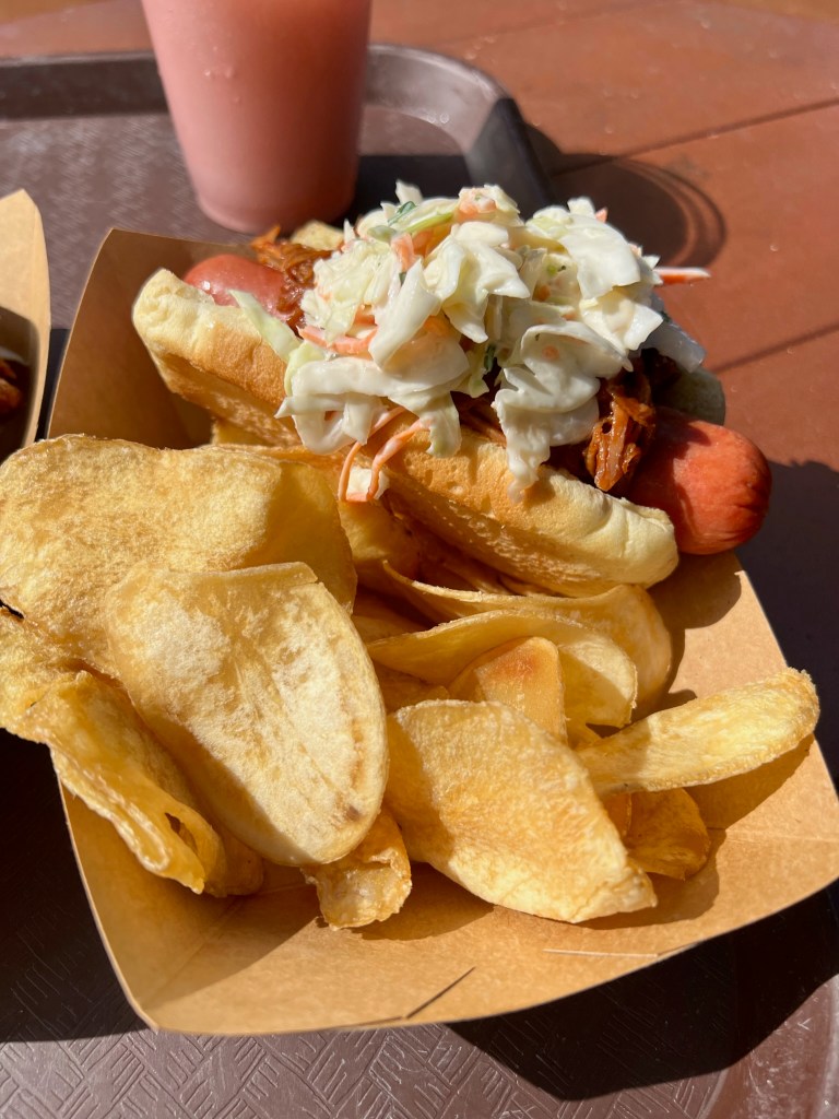 We then got the barbeque slaw dog. This was my favorite. One of my favorite foods are hotdogs, so it already scored some points in my book. The hotdog then has both components of the pulled pork sandwich on top of the hot dog. I never knew I wanted or needed pulled pork and slaw on a hotdog but I do.